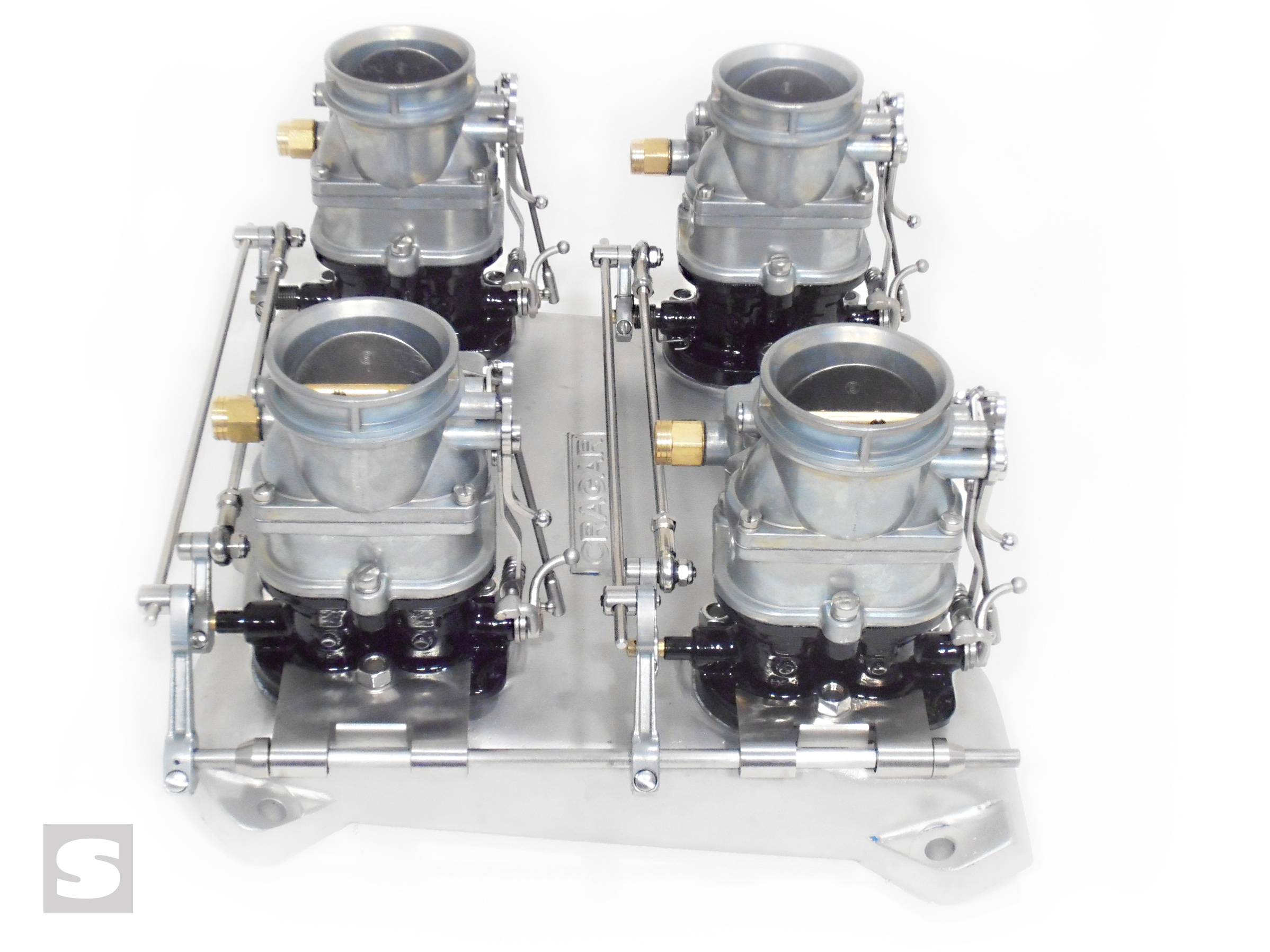 Connects to your throttle pedal linkage via one of the two long back-bar levers, or add a further one (Stromberg kit 9096K) anywhere along the back-bar shaft to align with your ‘pull’ point. Stromberg recommends a mechanical pedal link for all multi-carb systems.