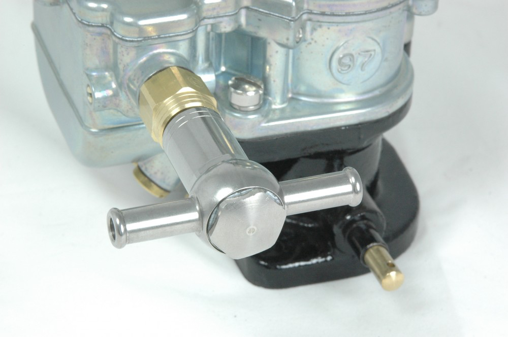 Fits single and double banjos on both standard 97s and BIG97s. Fitting tight into the Stromberg S-jet (or needle & seat), it moves the fuel line out one inch ensuring safe clearance for the long centre lever on all 97-style tripower progressive linkages.