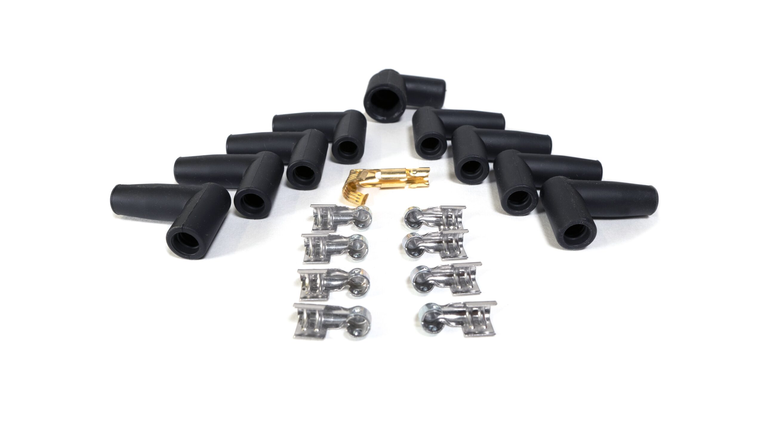- Pre-fitted 90-degree cap terminals for smarter ‘distributor-first’ installation. We know how hard it is to trim those front mount cap wires up close to the radiator where access is limited.