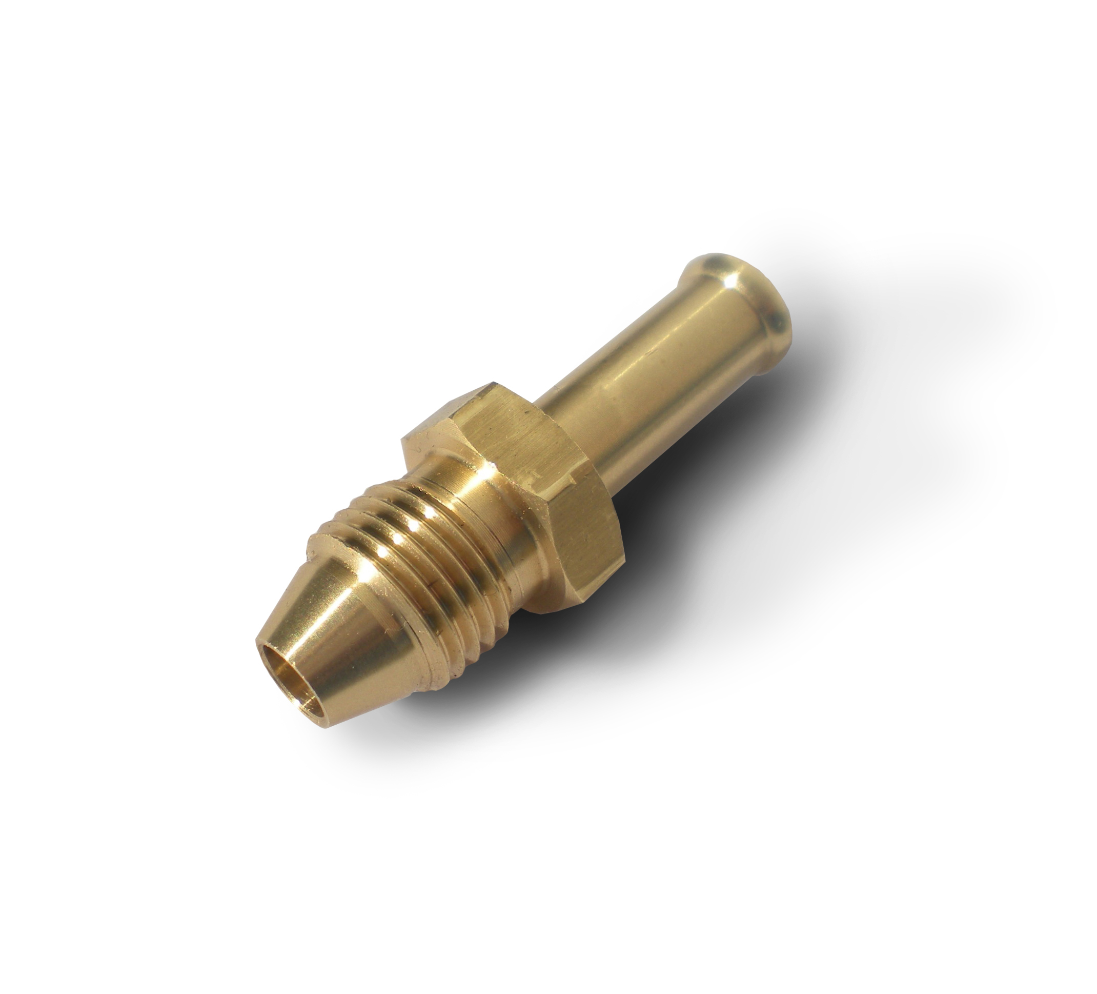 The only brass hose end available with the correct 18 degree seat for both modern Stromberg no-stick S-jets and the old school Stromberg needle & seat. Fits 5/16in and 3/8in ID hose.