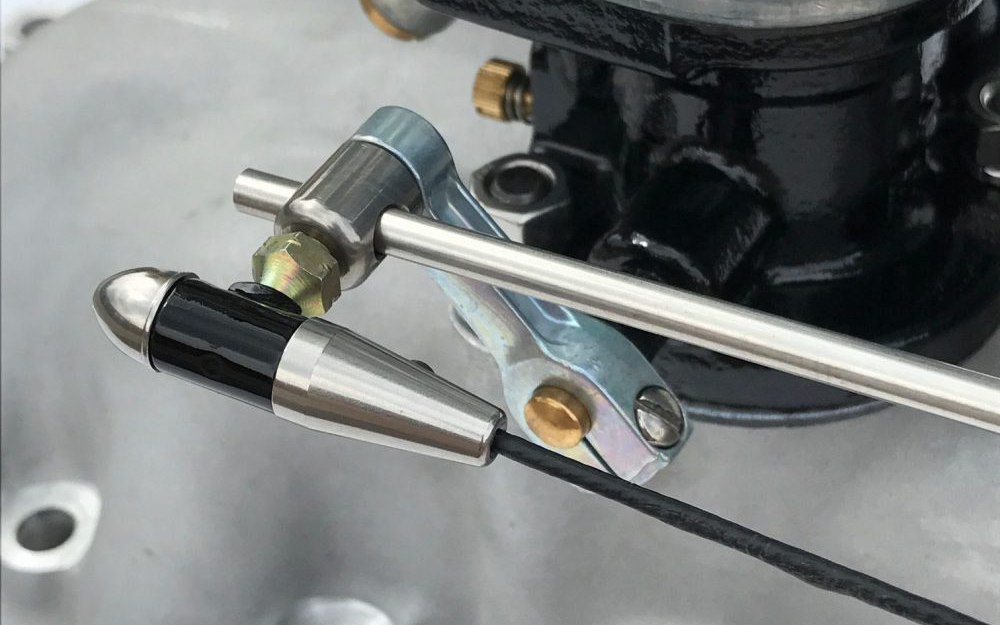 First up, the new Stromberg Linkage Bomb (check the shape!), part 9164K-R and -L . They are sized to clip straight onto the bigger Stromberg throttle lever ball (most clips fit a 1/4in ball only). And they’re threaded 10-32 in left and right-hand versions for a 3/16in rod, with included lock nuts and small wrench flats for easy tightening.